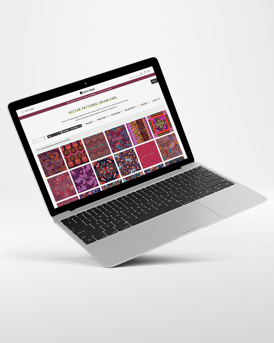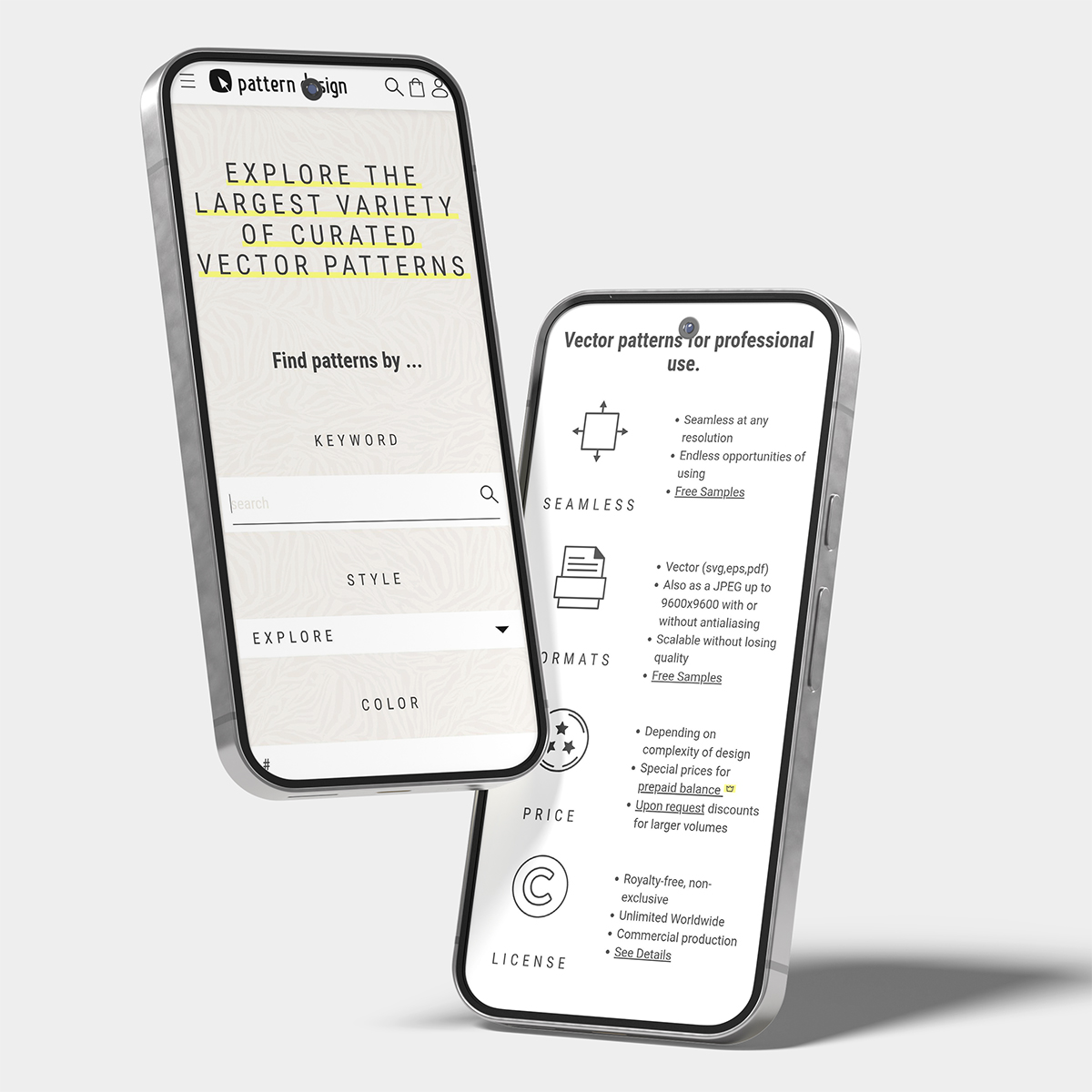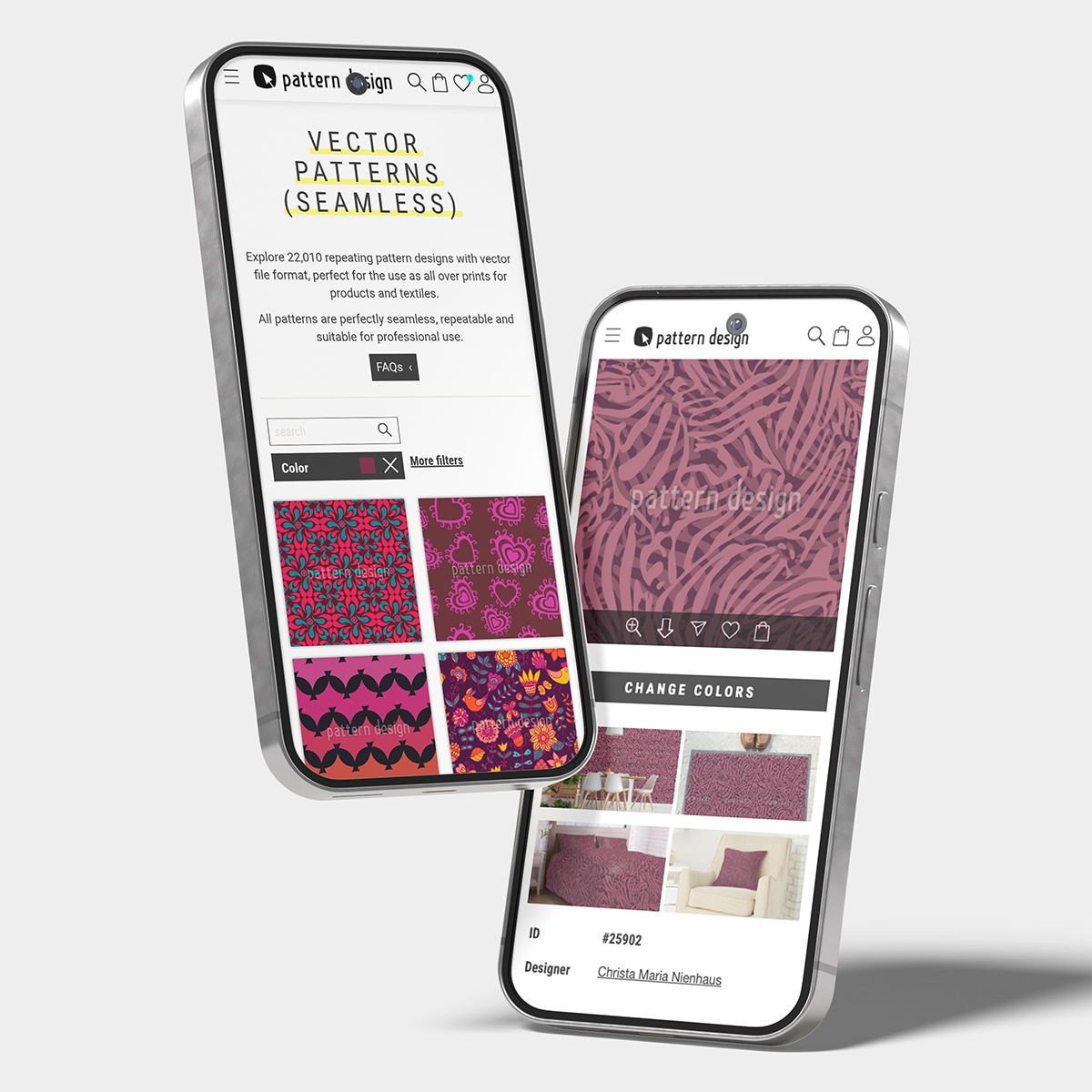 Für die Muster Stockplattform patterndesigns.com entwickelten wir neben dem Corporate Design vor allem das Webdesign.